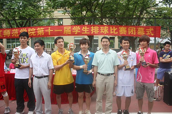 湛师新闻网5月9日讯 6日下午,人文学院女排、男排分别与数科院在旧区中9场进行排球“三好杯”冠、季军争夺总决赛。关工委谭笑副教授、人文学院党委谢应明书记、冯基聪副书记和辅导员张家波老师到场观看了比赛,为球队呐喊助威。
