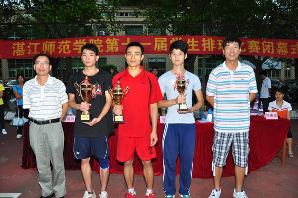 湛师新闻网5月8日讯 团结拼搏,锐意进取,5月6日,我校第十一届学生排球赛闭幕式在职工排球场举行。体育科学学院党委曹巧书记、欧美珍副院长,人文学院谢应明书记,法政学院全柱副书记,数科院唐洪浪副书记,商学院梁晋副书记,开放学院辅导员王克华老师,本次排球赛总裁判长刘荻老师,副裁判长许康成老师、蔡富华老师以及公共体育部副主任谢洪昌老师出席了闭幕式。