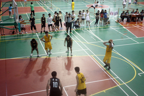 首先进行的是女子篮球总决赛,10对外班对10中本三班。随着裁判员的第一哨响起,双方球员们展开了激烈的争夺,球员们奋力拼杀,激烈抢夺,绝妙的传球配合,漂亮的突破上篮,令人拍案叫绝的远投,时不时掀起比赛一个个小高潮。拉拉队更是热情地为各自球队呐喊加油,响亮的口号声此起彼伏。最终,依靠出色的发挥,10中本3班荣获女子篮球总决赛冠军。