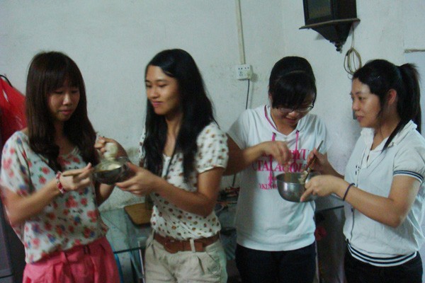 李阿姨从小双目失明,生活有很多不便。现在儿子工作在外,不能经常回家。她丈夫现在卧病在床,行动不便。外语院经常组织志愿者帮助李阿姨打扫卫生,陪她聊天。外语院团委五位干部和李阿姨见面后开心谈笑。李阿姨很健谈,也很乐观坚强。虽然双目失明,但李阿姨自己买菜做饭,料理生活。一番聊天后,团委干部为李阿姨包饺子。干部们手艺不错,手下饺子漂亮出生,李阿姨微笑听干部们讲话,气氛快乐融洽。