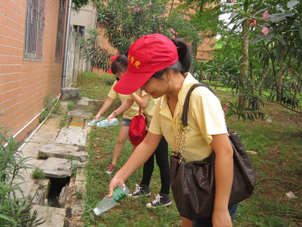 本次活动主要分为问卷调查、夏季预防蚊虫知识宣传、在滋生蚊虫的排水沟或草丛喷洒杀虫剂三个环节。在问卷调查环节中,队员们积极向路人提问,收集数据。在知识宣传环节中,队员向行人热心讲解关于预防蚊虫的知识,增长了大家的生活常识。在喷洒杀虫剂环节中,队员不顾排水沟的臭味和蚊虫的叮咬,认真完成喷洒工作。此次活动为创建和谐校园奉献了一份力量。
