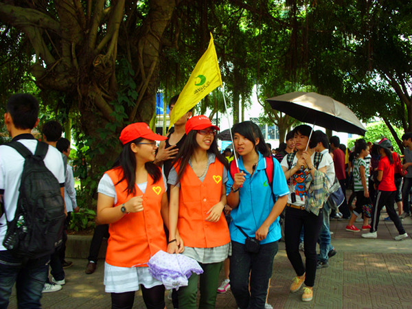 茂名五中师生共1400多人,分成33支小队来我校参观学习。为集中展示我校的历史文化底蕴和高校志愿者的风采,50多名志愿者自发组织一支校园参观服务队,推出文化与科学组合参观“套餐”,让来校参观的中学生多角度、全方位了解我校。