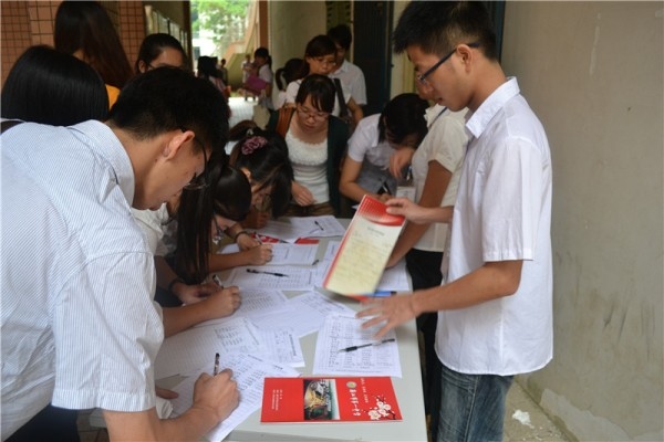 招聘会分为报名和面试两个环节进行。报名现场人来人往,有些科组应聘人数很多,如语文组、数学组、历史组前排起了长龙。来自省内外高校的毕业生也加入了应聘队伍,与我校毕业生同台竞聘。