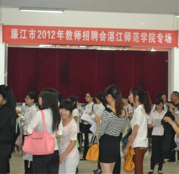 湛师新闻网4月27日讯 27日上午,招生与就业处在弘雷楼111室成功举办了2012年廉江市教师专场招聘会。根据公开、平等、竞争和择优的原则,本次招聘工作由廉江市教育局局长郑美务、党组书记李伟,人力资源和社会保障局局长钟作光,纪委监察局局长陈江,政府办副主任李建军统一组织廉江第一中学、廉江第二中学等32所学校的老师们展开。