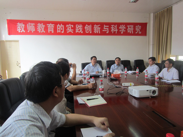 湛师新闻网4月24日讯 昨日上午,广东省教育研究院副院长、中山大学博士生导师黄崴教授来我校举行教师教育的实践创新与科学研究座谈会,教务处处长程可拉教授、科技处金义富处长以及教育科学学院、教育研究院部分教师参加了本次座谈,座谈会由教育研究院常务副院长李方教授主持。