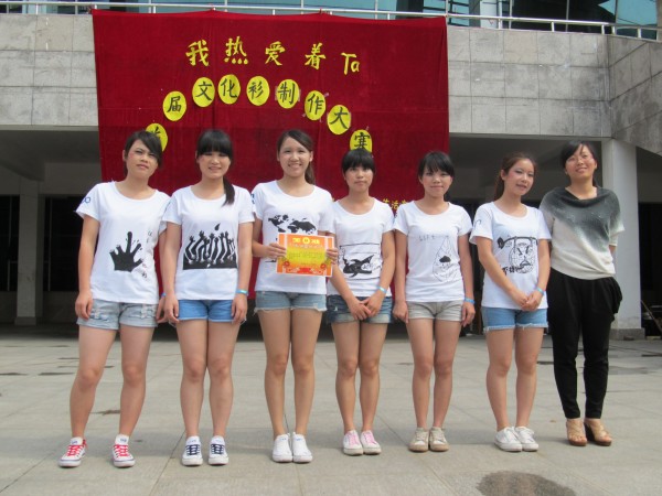 湛师新闻网4月24日讯 21日上午,由物理学院主办的以“告诉世界,我热爱着TA”为主题的特色文化衫制作比赛在大运石广场举行。辅导员易贤老师、工业设计专业谭锦华老师、工业设计协会会长成晓玉、物理学院学生会主席周晓旋以及各二级学院生活部干部等出席了本次比赛。同时,本次比赛还特别邀请了美术学院关建华同学和陶晶同学在现场制作文化衫。