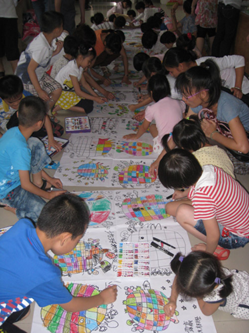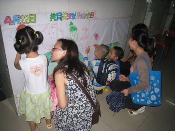 在主题教学活动中,大大班级家长和孩子一同制作《环保亲子报》,让幼儿了解保护地球的重要性;大班级孩子制作“节水标志”,向全园师生宣传节约用水的重要性;中班级孩子通过“我和动物是朋友”主题,让幼儿了解人类和动物应和谐相处的道理;小班级孩子开展爱护花草树木,美化地球妈妈的教育活动。