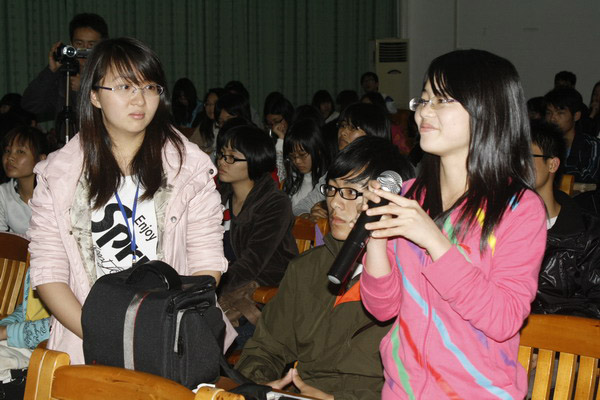 最后,李江凌副院长与学子们进行了互动,同学们就“如何针对90后大学生针对性地开展价值体系构建”进行了提问,他从“牢牢把握正确的思想舆论导向、充分发挥社会舆论的规范作用、充分发挥大众文化的熏陶作用”等方面一一作了回答。