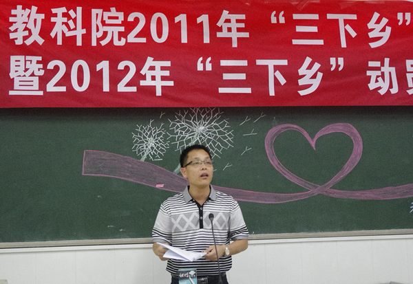 湛师新闻网4月22日讯 4 月20日晚,教科院2011年 “三下乡”总结表彰暨2012年“三下乡”动员培训大会在燕雷楼604教室举行。校思政部林春书记、教科院郑剑虹副院长、教科院党委郭和才副书记、辅导员邓倩文、魏珂、贾晶老师应邀出席大会。