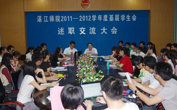 湛师新闻网4月22日讯 为了全面、系统地回顾与检查基层学生会的工作,调动其工作积极性,加强交流与学习,4月18日晚,校学生会在大学生活动中心综合会议室召开2011-2012年度基层学生会述职大会。校学生会指导老师梁剑、校学生会主席团以及各二级学院主席团参加了本次述职大会。