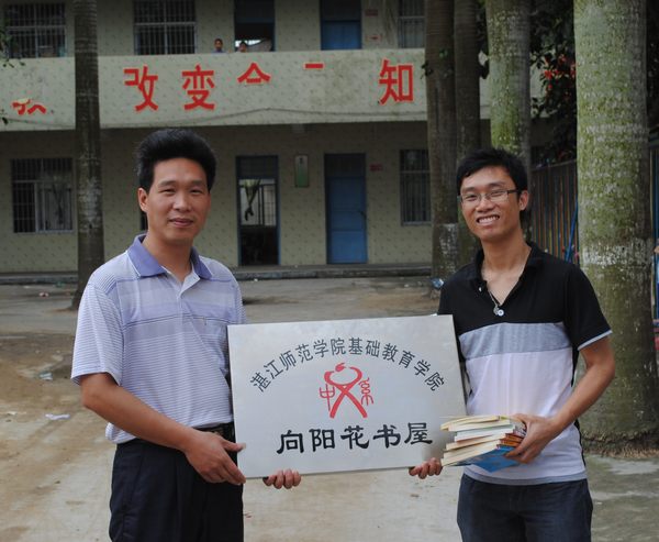 据悉,从2007年7月开始,基础教育学院中文系分团委与吴川市黄坡镇中山中心小学(塘基小学)建立“大学生暑期社会实践基地”,为促进中山中心小学的同学们德智体全面发展,圆中山中心小学孩子的读书梦想,基础教育学院中文系分团委从2010年开始实施“向阳花书屋”计划,并在吴川中山中心小学建立第一个“向阳花书屋”,鉴于实践基地的小学办学条件较差,学生课外读物严重不足的现状,基础教育学院中文系分团委计划每年向该小学捐赠一百套儿童读物、科普知识画册、经典文学作品等。