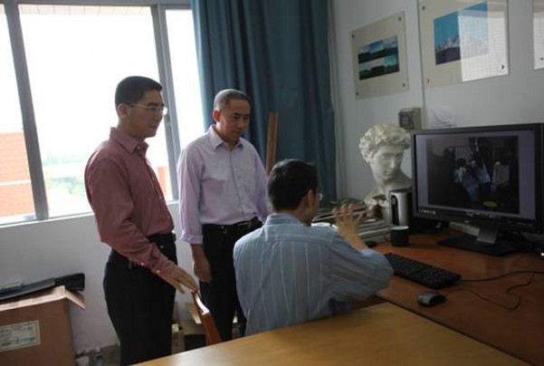 听取艺术摄影实训室负责人介绍图形工作站情况