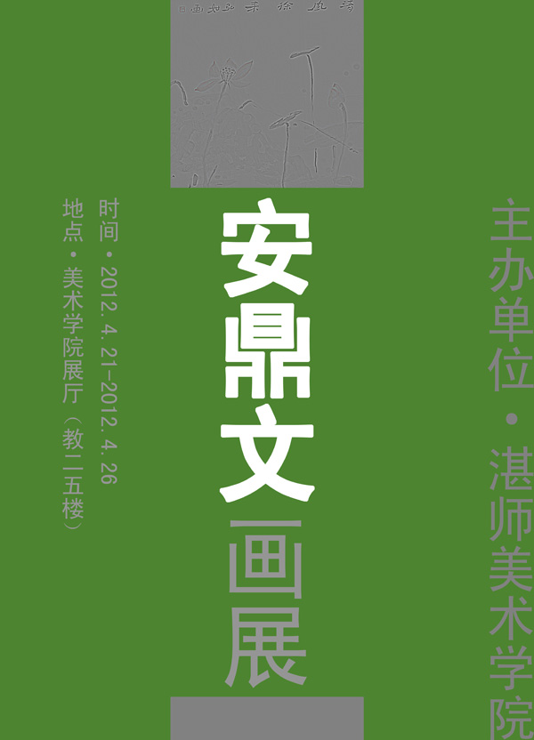 湛师新闻网4月19日讯 中国美术家协会会员、我校教授安鼎文个人画展将于2012-4-21日至26日在我校美术学院展厅举办。