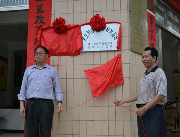 活动中,各领导分别为我校关工委、赤坎区关工委共建的青少年教育基地和教科院、民主街道办共建的青少年校外辅导站揭牌,并向青少年校外辅导站首批志愿者颁发了聘书。郑鸿主任、李德副主任、郑交主任、陈传添副主任等同志先后发言。