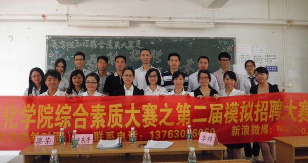 本次模拟招聘的参赛选手主要以“湛江师范学院附属中学化学教师”、“湛江赤坎华南化工有限公司销售员”、“湛江市嘉恒贸易有限公司办公室文员”三个职位进行应聘。首先,进入个人展示环节,参赛选手进行简单的自我介绍。接着,开始问题回答部分,参赛选手抽出问题并对所抽问题进行回答。最后,评委对参赛选手进行提问并给予相应的指导。整个比赛有条不紊地进行,大部分的参赛选手发挥了自己应有的水平,其中胡少丽等9位同学凭借出色的表现脱颖而出进入了总决赛。