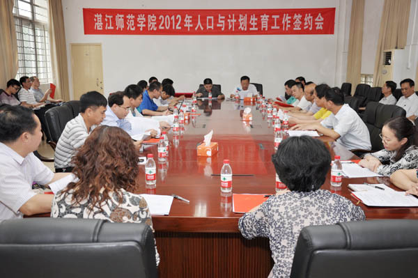 最后,刘副书记分别与学生处、人事处、法政学院、人文学院、物理学院等5个单位代表签《湛江师范学院人口与计划生育目标管理责任书》。