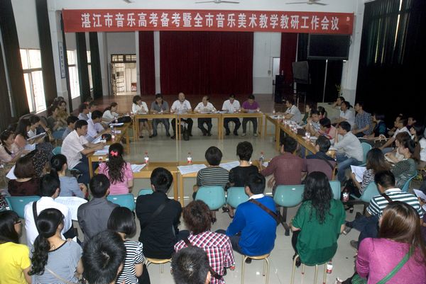 湛师新闻网4月13日讯 为进一步深化我市中小学音乐、美术教育教学工作改革,全面提高中小学音乐、美术课堂教学质量,4月12日、13日湛江市一年一度音乐高考备考暨全市音乐、美术教学教研工作会议在我校艺术楼A栋音乐表演室举行。湛江市教育局李尚武副局长、艺术科李小娥科长、音乐学院党委书记陈瑜、院长刘福瑞、党委副书记黄增、副院长孙建华及湛江市各中小学优秀教师参加了本次教研工作会议,会议由市教育局李小娥科长主持。