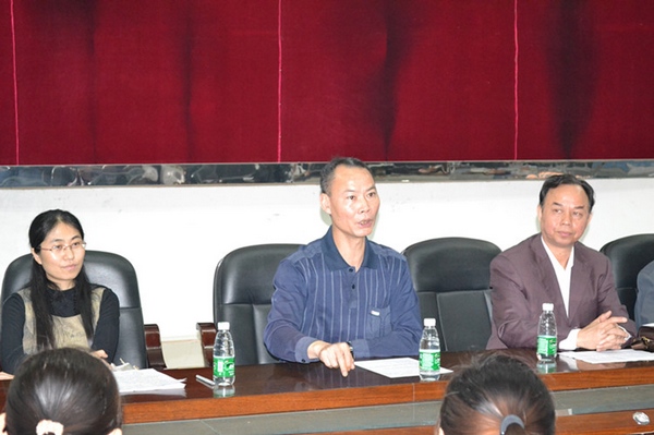 会上,梁民校长发表了讲话,他首先介绍湛江四中及其滨海学校发展历程与现状。湛江四中经过半个多世纪的发展,现已是办学理念先进,师资力量强大,教学质量很好的重点中学。湛江四中滨海学校是应湛江学子对优质学位的需要,经上级教育行政部门批准,而创办的一所高品位、现代化、创新型的民办中学,教育资源共享,由湛江四中协助管理。近年来,高考、中考成绩一直名列湛江市前列,得到社会和群众广泛的认可。接着,梁校长说明了到校招聘的目的和要求,并介绍了我校历届毕业生在学校任教的工作和生活情况。杨小平副校长对本次招聘的程序、要求和注重事项做了补充说明。