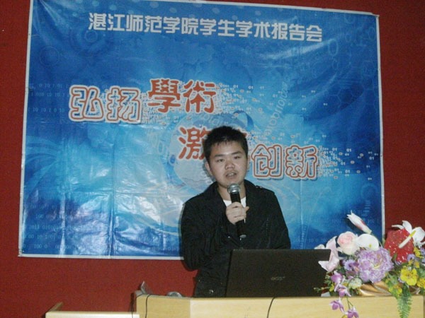 湛师新闻网4月11日讯 弘扬学术、激励创新。4月7日上午,由校团委举办的学生学术报告会第196场和第197场报告分别在鸿园四楼学术报告厅如期举行,主讲人分别是来自美术学院11美本(1)班的祝志红同学和生科院10烹饪的何春梅同学,美术学院黄钰晶老师出席了报告会。报告会现场气氛热烈,座无虚席。