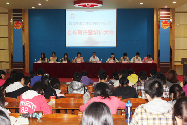 湛师新闻网4月9日讯 为进一步提高社团会长的理论水平和业务技能,规范我校学生社团会长的聘任制度,加强社团管理,昨天上午,校社联会召集全体干部、校院两级学生社团新老正副会长以及各二级学院社联会主要干部,在我校弘雷楼311室举行了2012年湛师学生社团会长聘任暨培训大会。校团委李发武副书记出席。