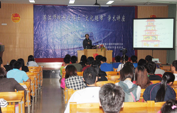 湛师新闻网4月9日讯 亲近学子,崇尚学术。昨天晚上,由校团委、校学生会主办的第四十七场教授博士文化超市讲座在鸿园四楼学术报告厅举行,我校体育科学学院运动人体科学系崔静教授主讲了以《漫谈大学生健康》为主题的学术讲座。全校二百多名学生慕名前来并听取了本次讲座,现场座无虚席,气氛十分活跃。