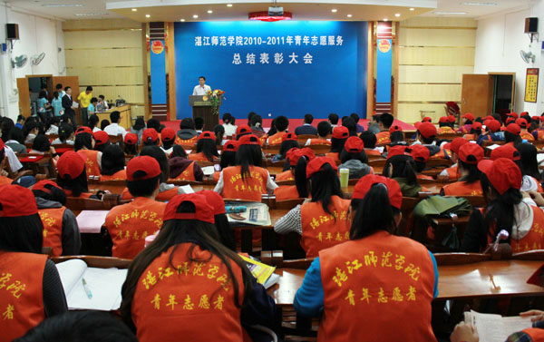 湛师新闻网4月8日讯 春暖湛师,志愿同行。昨晚,我校在弘雷楼311室举行了2010—2011年青年志愿服务总结表彰大会。校团委李粤书记、李发武副书记等领导老师,各二级学院(含基础教育学院、附中)的辅导员老师和志愿者代表参加了本次大会。大会由校团委莫然老师主持。