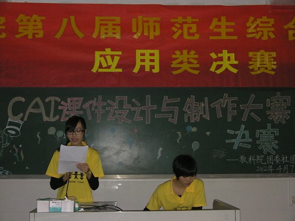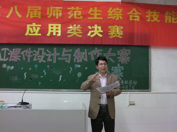 本次比赛是教科院为提高学生运用现代教学技术的基本技能,明确CAI课件的辅助功能,促进学生树立新的教学理念,确立以学生为主体,教师为主导的教学理念,激发制作CAI课件的热情而开展的。在赛前,已经经过初赛的选拔的10组选手已跃跃欲试,运筹帷幄。