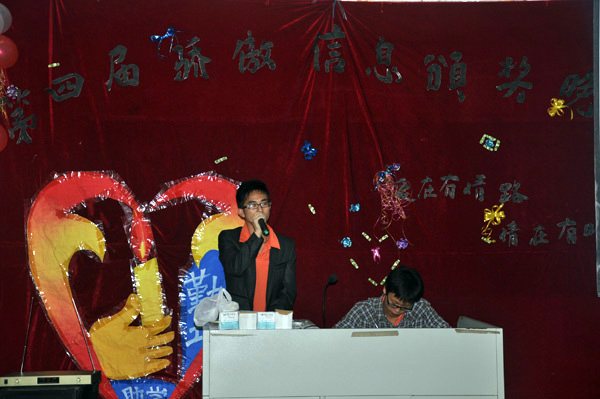 晚会在信息学院勤工中心秘书长吕燕华的感人致辞中渐渐拉开序幕。随后进行获奖者的DV展示,精彩夺目的DV展示了“骄傲信息”获奖者自立自强的感人事迹,或勤工俭学,或刻苦学习,或积极参加实践活动,他们都用自己的行动去诠释着自强不息的精神,也让大家看到了他们在面对困难时的不退缩不畏惧、乐观积极、勇于拼搏的精神。他们为梦想的顽强奋斗,他们不惜一切努力的付出,都深深感动了在场的观众,赢得了阵阵掌声。