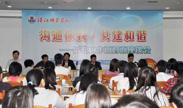 湛师新闻网4月5日讯 为了反映同学的意见,维护同学权益,架构后勤部门与同学之间的沟通桥梁,3月31日下午,由后勤产业处主办、校学生会协办的“沟通你我 共建和谐”后勤工作面对面座谈会在园府酒店会议室召开,会议由后勤产业处党总支部冼冠强书记主持。