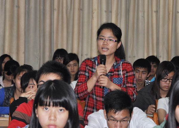 在现场提问、现场解答的互动环节中,在场的学生代表踊跃发言,提出 “加强除四害工作”、“在宿舍走廊增添晾衣绳”、 “增加菜式品种”、“加强饭堂卫生”等系列与学生生活密切相关的问题,相关部门负责人为此逐一进行了耐心的解答并承诺尽早解决。