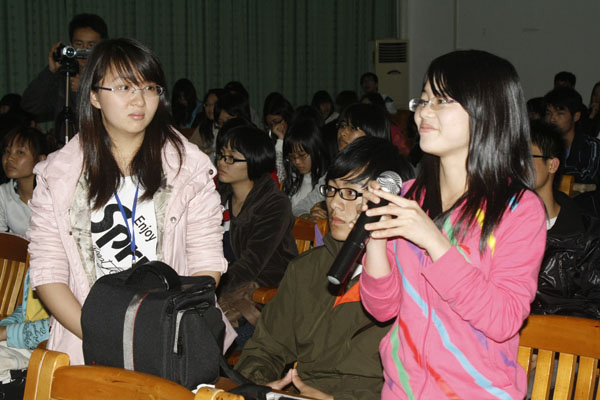 在互动环节中,刘教授耐心地回答了同学们提出的问题。针对“儒学应该如何变化以适应现代社会才能让人们更好的接受”的问题,他认为这是现时儒学研究的主流问题,儒学应在思考中进步,研究的出发点应“为天下谋幸福,讲求际”,形式要“编写大量童蒙读物,如《三字经》等,从小孩子开始,对小孩子进行教育和潜移默化的作用”。最后,刘教授寄语同学们既要追求心灵的平静,又要实现人生应有的价值,他的旁征博引和引经据典赢得了现场同学们热烈的掌声。