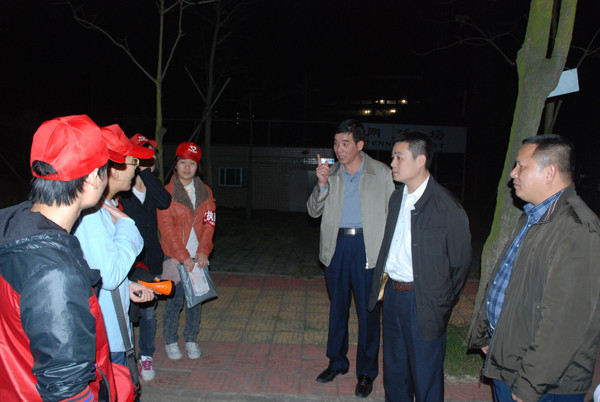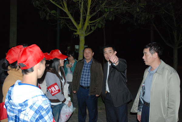 在各个巡逻点,李粤书记、林森处长等领导老师亲切看望了参加校园安全巡查活动的志愿者,详细询问了志愿者们巡查的具体情况,同时对志愿者们的工作给予了肯定、赞扬和指导。