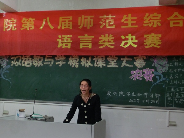 湛师新闻网3月28日讯 为进一步提高师范生综合技能,培养高素质教学人才,增强学生就业竞争力。3月23至25日晚,由教科院举办的第八届师范生综合技能大赛之语言类决赛在燕雷楼举行。语言类比赛分为双语教与学模拟课堂比赛、说课比赛、书评演讲比赛三个大赛。