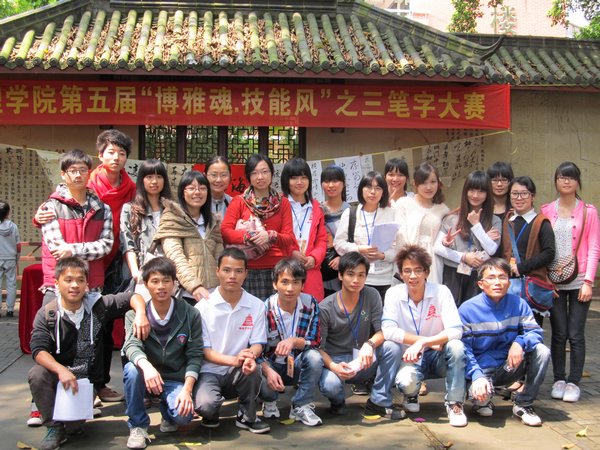 湛师新闻网3月27日讯 为了调动学生练习“三笔字”的积极性,弘扬博雅教育精神和提高任教技能,近日,物理学院在古榕广场举行以“博雅魂·技能风”为主题的综合素质大赛之“三笔字”大赛,担任这次比赛的评委有辅导员陈璐老师、工业设计专业林舒瑶老师、校书法协会会长王心以及理事李韵琪和李俊彦。