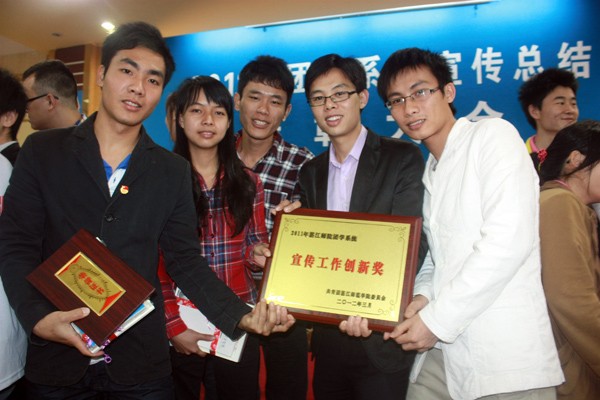 湛师新闻网3月25日讯 基于我校各二级学院团学宣传组织在2011年里的宣传工作取得显著的成果,校团委于3月25日上午在弘雷楼311室隆重举行2011年团学系统宣传总结表彰大会。人文学院在2011年团学系统宣传工作中硕果累累,荣获宣传工作创新奖。其中人文学院符杰同学被评为“十佳”宣传干部,邱嘉丽、陈再华两位同学分别荣获“‘十佳’文字记者”、“‘十佳’”摄影家称号,黎建军同学撰写的新闻稿获“十佳”新闻来稿,该院《太阳谷》和《凝望》等刊物被评为“十佳”基层刊物。此外,人文学院梁妙施、林妃波等同学被评为“百优”宣传干部等。