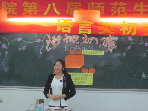 经主持人简要介绍说课的重要性后,比赛正式开始。共有十八位大三选手参加了本次比赛。选手从说教材、说教法、说学法、说教学流程、说板书设计这五大方面着手,借助幻灯片,配合巧妙精炼的构思讲解、肢体语言和自作教具,在八分钟的说课中将课堂教学活灵活现地展示出来。本次说课比赛的内容主要集中在小学和初中课程,突出了专业特色,给选手们提供了想象和创作的灵感,选手们也深切明白教育的重要性,充分展示了自己的才能。