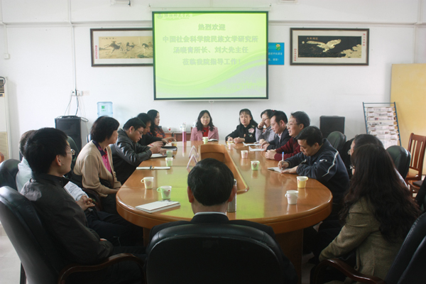 汤晓青所长先表达对探访我校的期望之情,并马上展开了有关民族文化研究工作的介绍。她从自己从事30年民族文化工作的历程中,就研究民族文化工作的缘由、发展历程、发展现状、所遇到的困惑与问题以及解决问题的方式和注意事项等方面向与会者谈了自己的发现、启发和体会。她表示,少数民族文学的研究虽然处于现在文学研究的边缘,但纵观民族文化的研究历程可以发现,其中的学术空间很大,生长点很多,做起来很鲜活、很有意思。她还提倡学者们踊跃向民族文学研究阵地《民族文学研究》投稿,为民族文化的繁荣贡献力量。