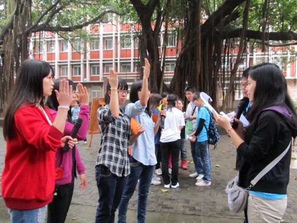 本是回南天,潮湿的空气令人厌烦,然而古榕广场上醒狮舞蹈加上动感的鼓声节奏给人强烈的感官冲击,赢得场上的阵阵掌声。接着,学生会主席周晓璇同学为活动致辞并宣布活动开始。