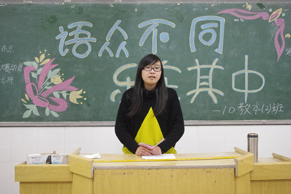 最后,获得学校第六届双语大赛一等奖的王凤苗及在教科院教案设计大赛中获奖的蔡宗丽给同学介绍了比赛的相关情况,并对同学提出的问题做了详细的回答。