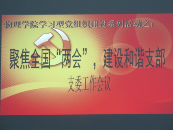 这次党支委会议,展示了党支部在学习两会精神,关注时事热点和国家发展情况,建设和谐支部的先进风貌,传达了该院聚焦两会并积极向党组织靠拢的决心,为今后构建和谐党支部打下坚实的基础。