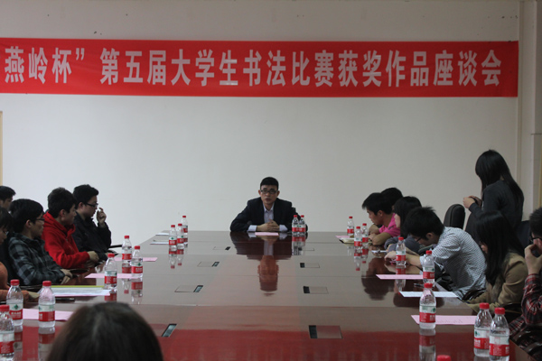 湛师新闻网3月4日讯 伴着和煦的春风,嗅着怡人的墨香,3月3日下午,“燕岭杯”第五届大学生书法大赛获奖作品座谈会在紫荆楼四楼会议室举行。协会指导老师黄达海处长、“燕岭杯”书法大赛获奖者以及部分协会会员参加了本次座谈会。