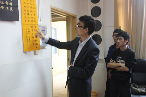 座谈会伊始,主持人与黄达海处长的幽默开场很快带动现场的气氛,在轻松融洽的氛围下,书法大赛获奖者畅所欲言。获得专业毛笔组一等奖的韦振族、非专业毛笔组一等奖获得者钟成利、陈幸冰以及获得硬笔组一等奖的王新等获奖同学都分别介绍了其作品的创作灵感、意蕴以及创作技巧等,参加座谈会的同学也就获奖作品提出疑问并给出了个人见解。期间,黄达海处长对获奖作品作出点评并对作者书艺水平的提高提出建议。在这你来我往,有问有答的互动环节中,志同道合的书法爱好者在交流书艺心得的同时,取长补短,争取在书艺上更大的提高。