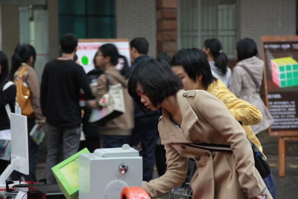 本次作品展是主要由该院工业设计专业的同学设计完成,其中不乏创新之作。集网线接口与读卡器于一身的路由器、以琴键为按钮的乐动面包机、轻巧美观的噪音转换器等新颖的工业作品模型在现场展出,并吸引众多同学围观。此外,多种概念型作品则以海报的形式,图文并茂地展示在大家面前。无盖提醒的沙井盖灯、安全而趣味的摔炮灯、车站分类垃圾桶等展览作品以全新的概念雅致而实用地展现在大众面前,这也是本次作品展的特色所在。