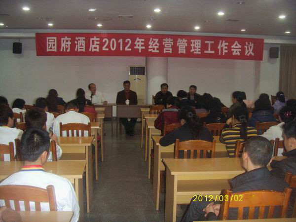 同时,他围绕如何完成今年的经营管理任务,作出了部署。他指出2012年园府酒店的经营管理任务主要有:一、完成《湛江师范学院园府酒店经营管理协议书》订立的经济指标与各项任务;二、继续推进经济目标管理,确保酒店经营目标的实现;三、加大市场开拓力度,转变营销模式,建构无形大酒店;四、加快管理转型,注重内涵发展,提升服务质量;五、抓好员工队伍建设,进一步提升酒店整体管理水平和服务能力;六、严格控制成本,加强细化核算,向管理要效益;七、加强安全管理和设备的维护保养,保证酒店的安全运行;八、营造良好的工作环境,进一步提升员工的福利待遇,增强团队凝聚力。