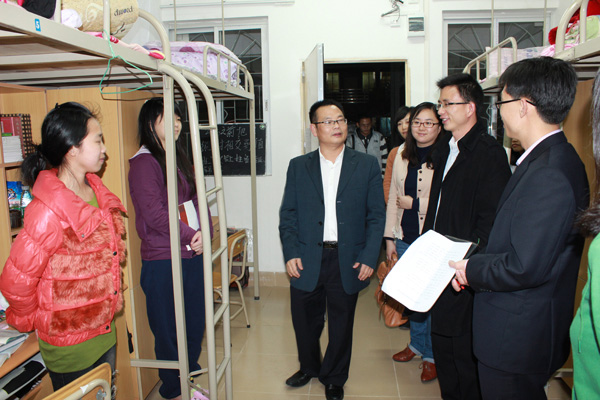 湛师新闻网2月27日讯 微微细雨飘,浓浓温情送。昨天,人文学院谢应明书记、冯基聪副书记及辅导员詹绍姬、黄河、谢明亮、张家波老师在开学前夕到尚勇苑走访了人文学院11级女生新宿舍,送上亲切的问候和关怀。随行的还有人文学院各大机构主要干部。