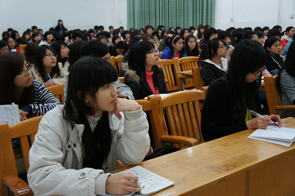 魏柯老师从学生贷款,大学生就业难,学术成果及学风建设等方面展开讲话,并从身边的大学生的典型例子由浅入深地规劝学子,要珍惜大学的时间,付出与收获成正比。