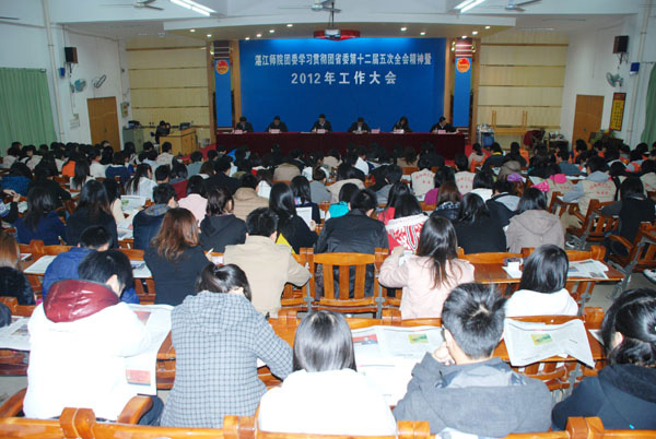 湛师新闻网2月26日讯 今天下午,校团委在弘雷楼311室召开了2012年共青团工作部署大会。校团委全体老师、各二级学院辅导员以及全体学生干部参加了大会,会议由校团委李发武副书记主持。