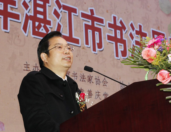 常务副市长、市公安局局长张荣辉对举办2012湛江市书法界新春雅集活动表示祝贺,他希望广大书法家要肩负起社会责任,把更多的时间用在学科学、学知识、学书法上,对艺术上有所追求,为建设文化强市多出精品,为湛江五年崛起而作出应有的贡献。