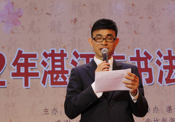 据了解,自2004年以来,每年的早春,湛江市书法家协会都搞一次大型新春雅集活动,书法界的同仁欢聚一堂,以书会友,共聚友谊,同论书道,共促我市书法事业的发展。每年的这个时候,已经成了湛江书法界还有湛江艺术界和社会各界人士共同期盼又津津乐道的一大文化盛事。每年的活动都搞得隆重宏大,分别在皇冠假日酒店、恒逸国际酒店、海滨宾馆等湛江高档酒店举行。而活动举办8年来均由黄达海处长主持,黄处长大气、沉稳、专业又不失幽黙的主持风格得到领导嘉宾的高度肯定,也受到广大书法家的好评与欢迎,被誉为湛江书法界的“金牌司仪”。
