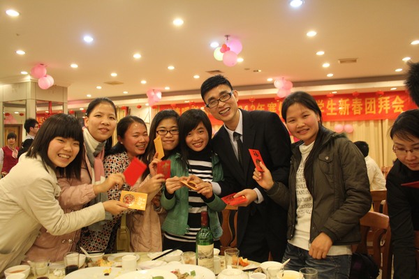 随着一曲悠扬的琵琶独奏,大家一起共进团圆饭,席间还进行了才艺表演和幸运大抽奖活动。在一片欢声笑语中,师生们举杯同庆,其乐融融。而更令人激动的莫过于派红包的环节,在场的每一个同学都从黄达海处长手中领到了龙年春节的第一个红包。